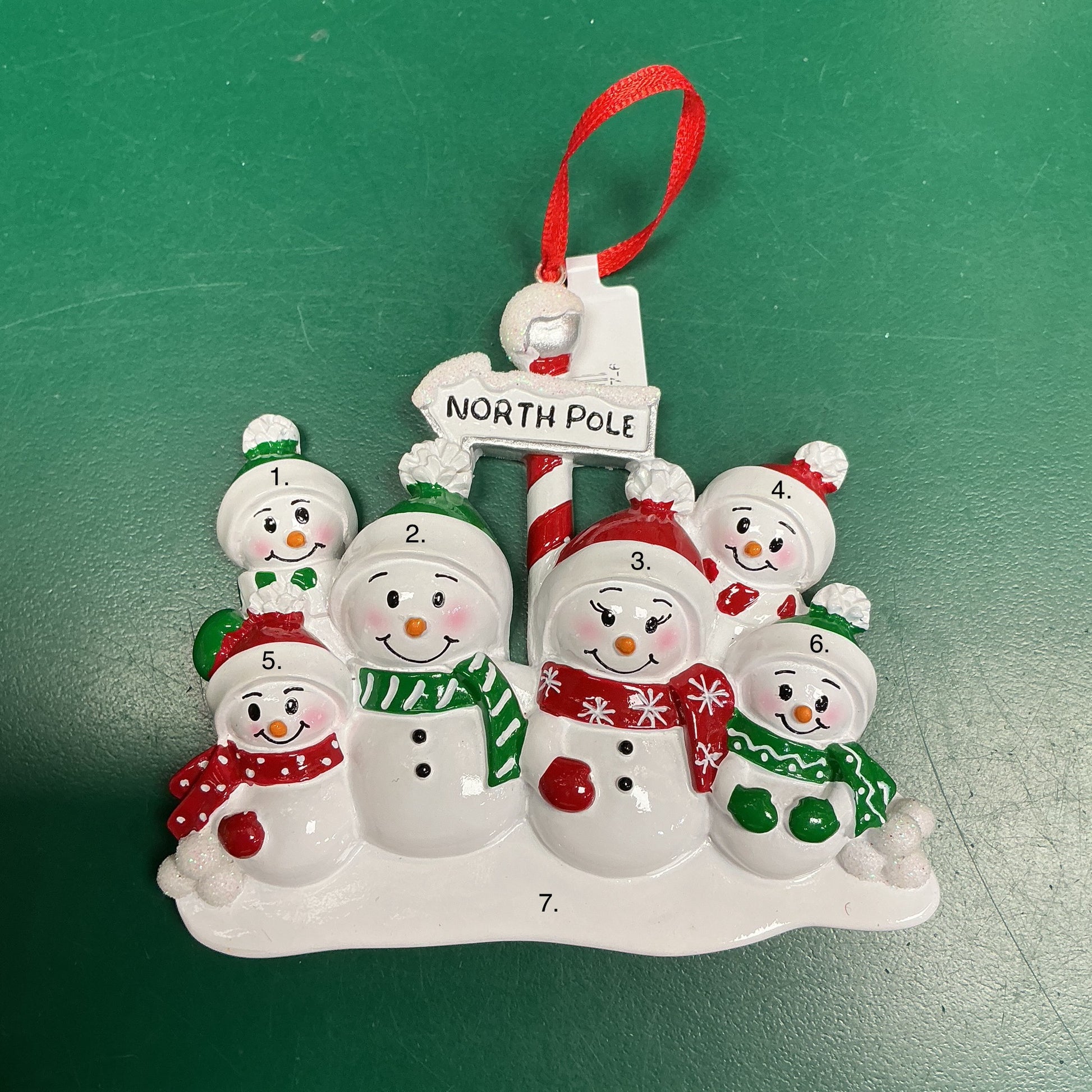 Personalize this North Pole snowman family of 6!