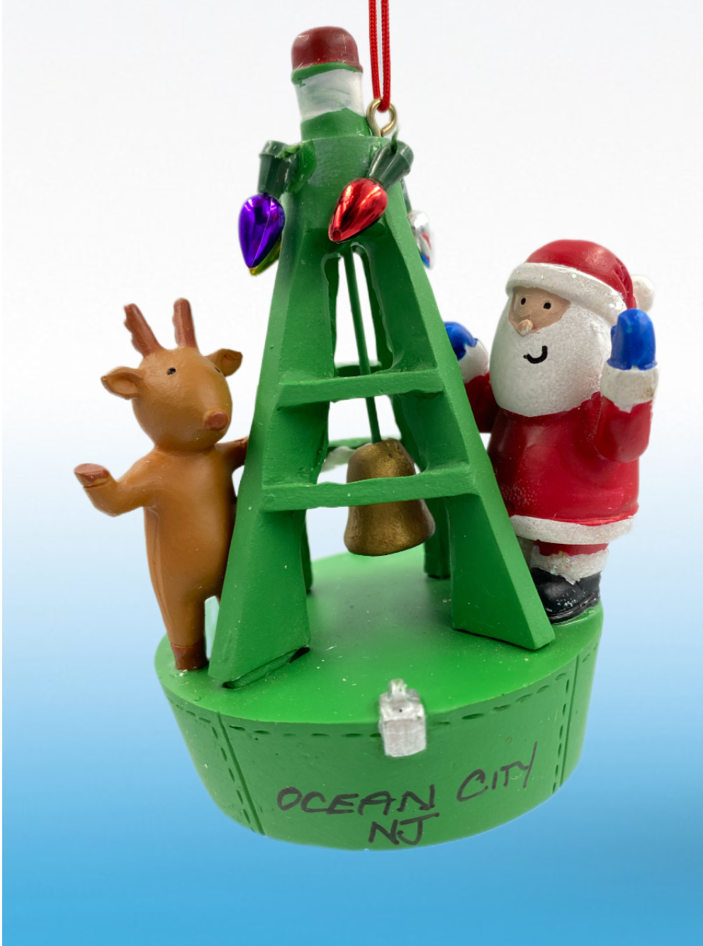 Santa and his reindeer are decorating this Ocean City buoy with lights!