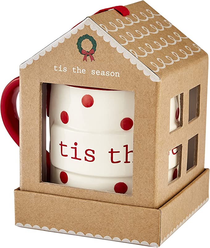 Hand-painted ceramic mug comes in kraft gingerbread house gift box.