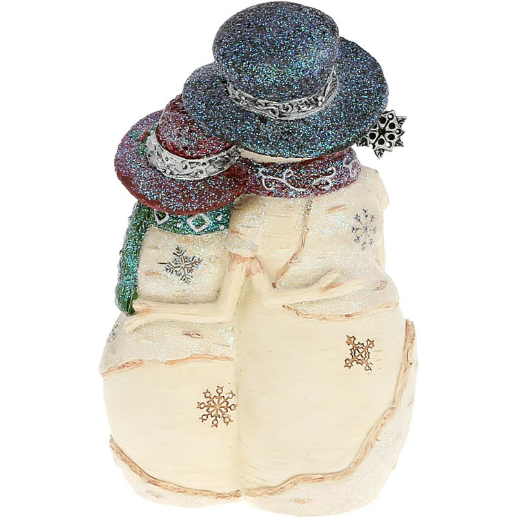 The BirchHearts Collection snowcouple holding a snowbaby figurine