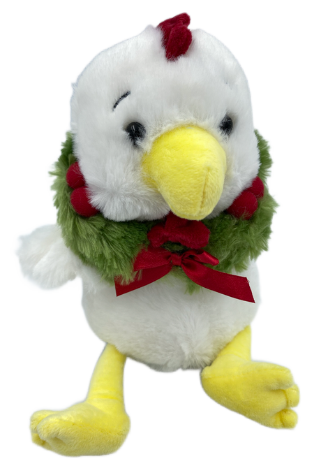 This plush chicken is ready for the holidays!